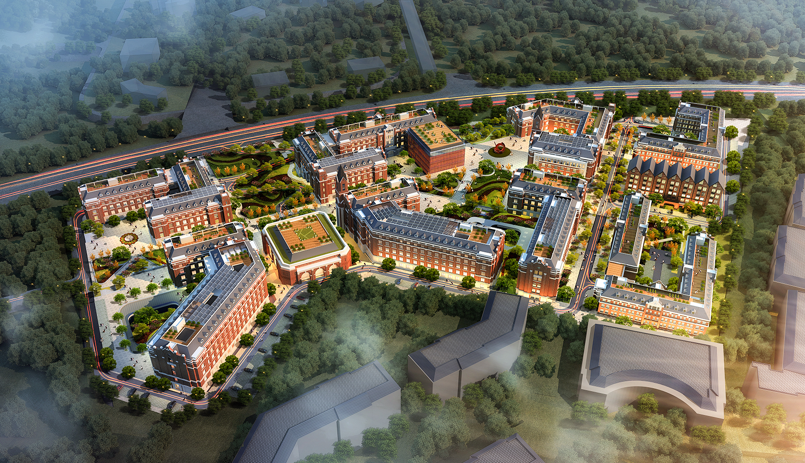 廣場——以歐式規(guī)劃理念為基準,在園區(qū)中心設(shè)置廣場,創(chuàng)造怡人的室外休憩空間;