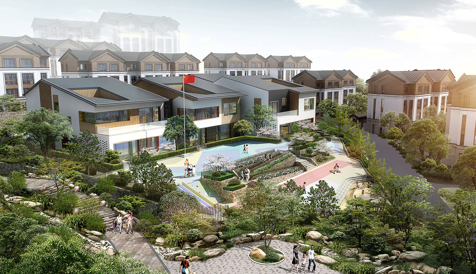 以“鄉(xiāng)村振興” 為背景,以“藏馬山居生活”為目標核心,項目把東方田園與住區(qū)生活融為一體、貫穿自然生態(tài)、海綿城市的設(shè)計理念。景觀設(shè)計挖掘藏馬山的特色文化,延續(xù)當?shù)鼐G色生態(tài)、山野趣味的自然風貌,通過場景化的展示,融入到景觀設(shè)計中,打造特點鮮明、各有特色的入口體驗、商業(yè)街區(qū)、山居生活三大板塊。