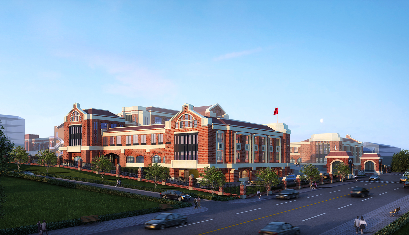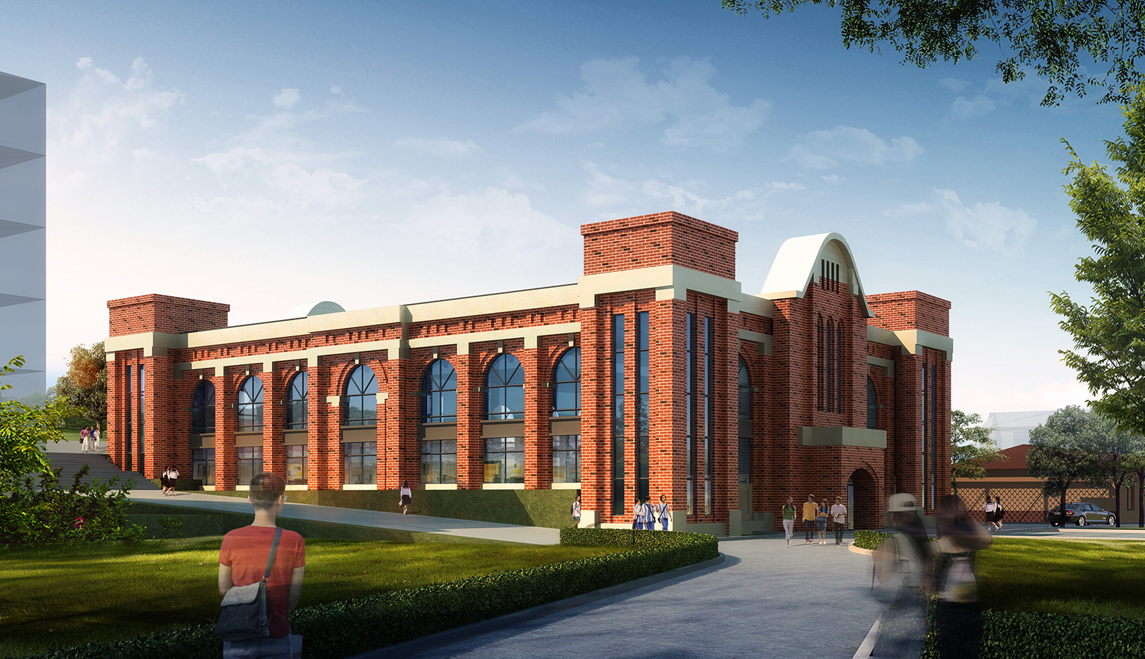 以打造“個(gè)性化”“特色鮮明”的學(xué)校為基本目標(biāo),創(chuàng)造均衡合理的校園布局,體驗(yàn)豐富的校園空間;按照“以人為本”的原則,營(yíng)造充滿活力的室外環(huán)境,將教育從教育課堂擴(kuò)展到學(xué)校的每個(gè)角落;通過(guò)庭院連廊聯(lián)系校園功能,創(chuàng)造大量的室外交流空間和灰空間,創(chuàng)造優(yōu)良的校園環(huán)境