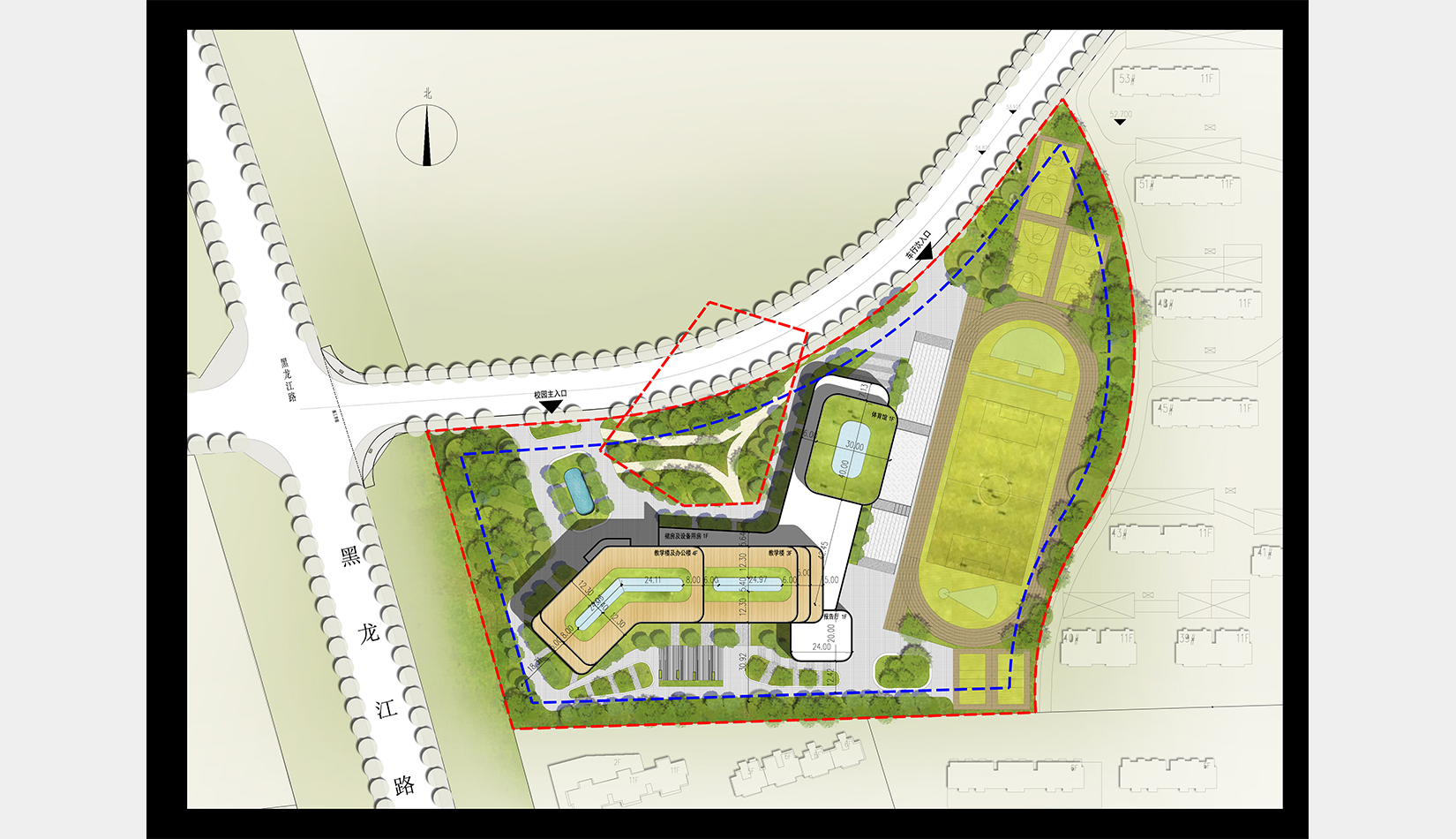 功能分區(qū)遵循“教學(xué)—觀演—運(yùn)動”三點(diǎn)式布局原則,各功能之間聯(lián)系緊密,流線合理清晰。不再鋪設(shè)走廊,將連接性空間設(shè)計成“學(xué)習(xí)小徑”,從而創(chuàng)造更實用的空間以及一個更有效的建筑,同時營造出一種“學(xué)習(xí)無處不在”的氛圍。