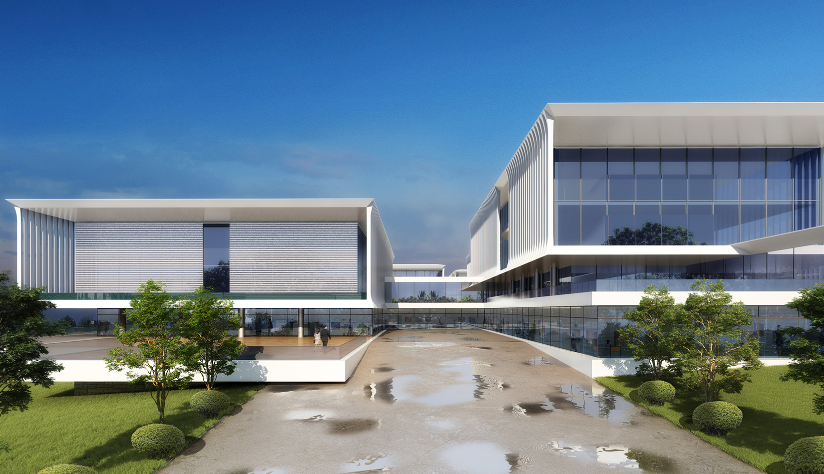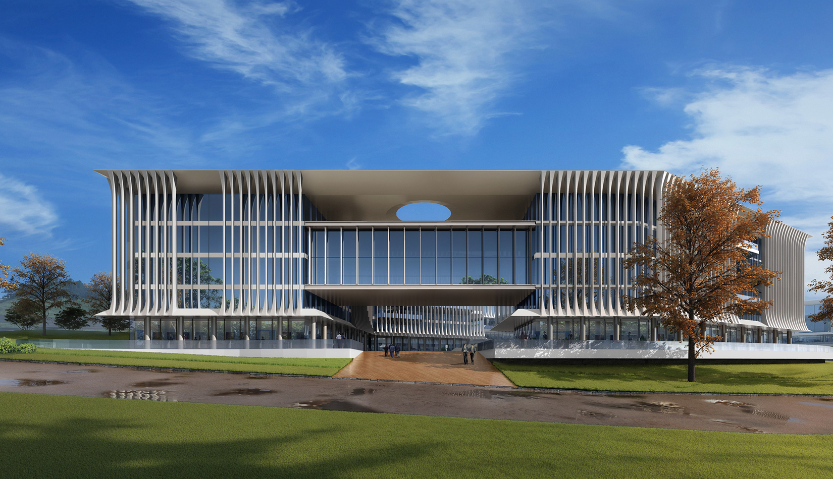 簡潔大氣的豎向橫向劃分,使MECS主樓充滿海洋氣息;白色流線型屋頂順應(yīng)地勢(shì),自由舒展。流線型的體塊靠近海岸線,表達(dá)科研人員的探索精神,并且與地勢(shì)相結(jié)合。