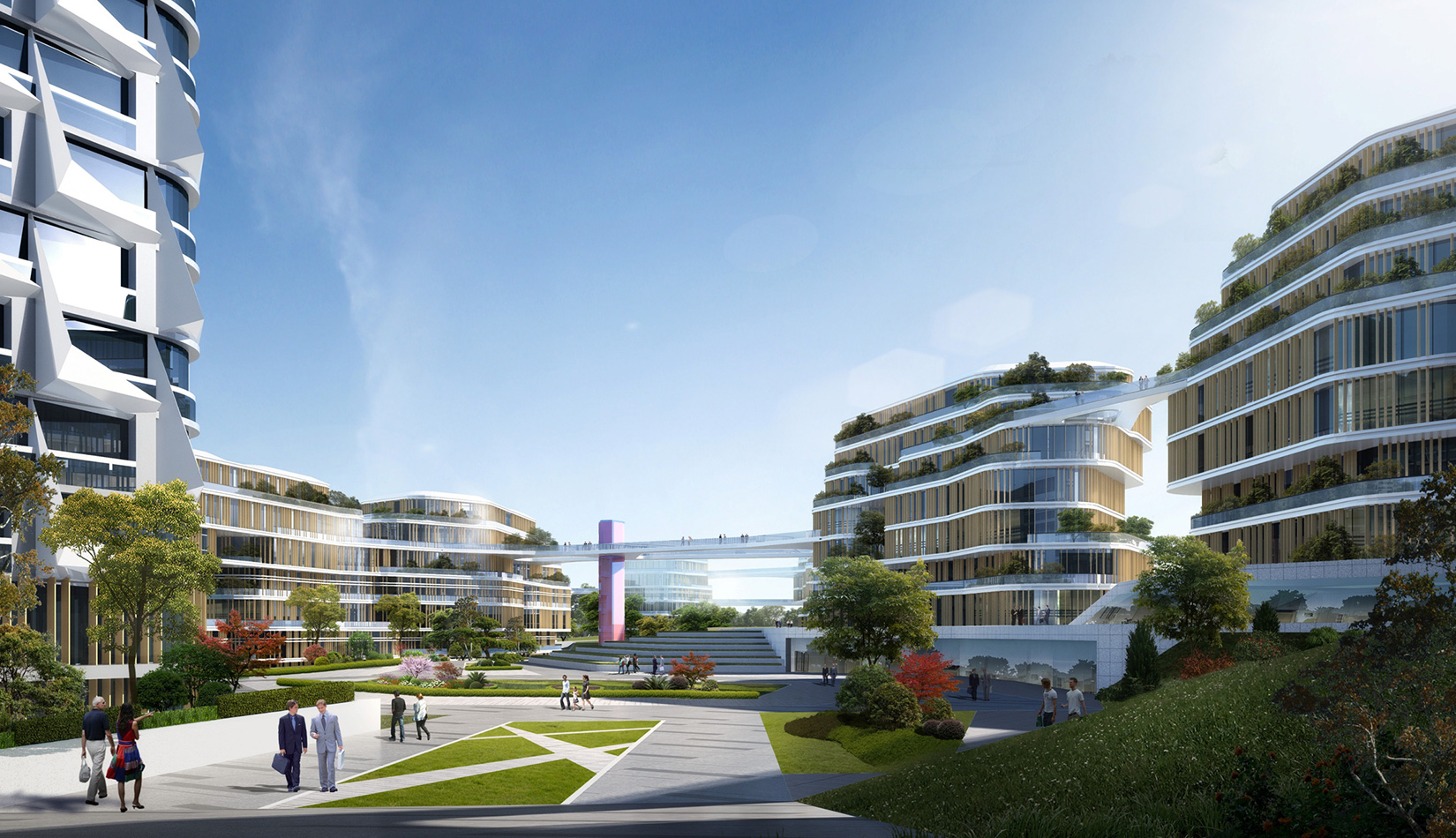 將青島國(guó)際院士港各地塊整體考慮,選取每個(gè)地塊中的標(biāo)志性建筑物或廣場(chǎng),組成“北斗七星”,賦予美好喻意。為實(shí)現(xiàn)相近研究領(lǐng)域的互融互通,將院士樓組團(tuán)化布局,形成一個(gè)個(gè)美麗的“星座”。依托李村河,規(guī)劃一條“星河”將院士港各個(gè)“星座”及標(biāo)志性的“七星”連接起來(lái),營(yíng)造“群星閃耀”的意向。