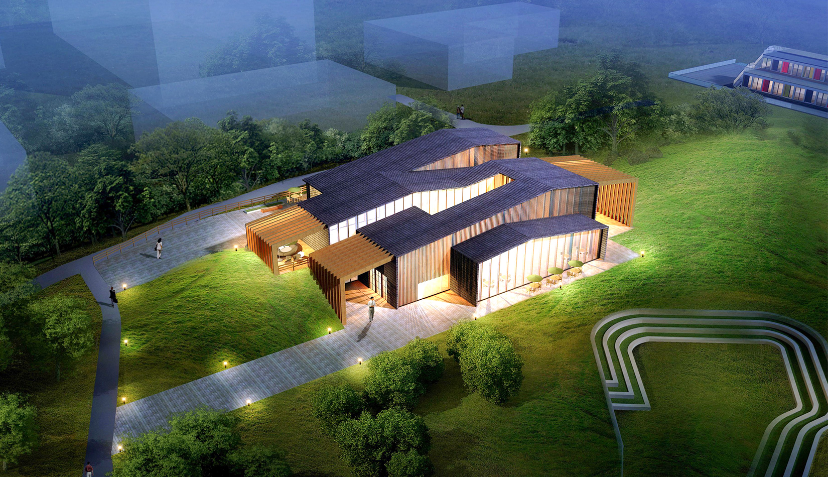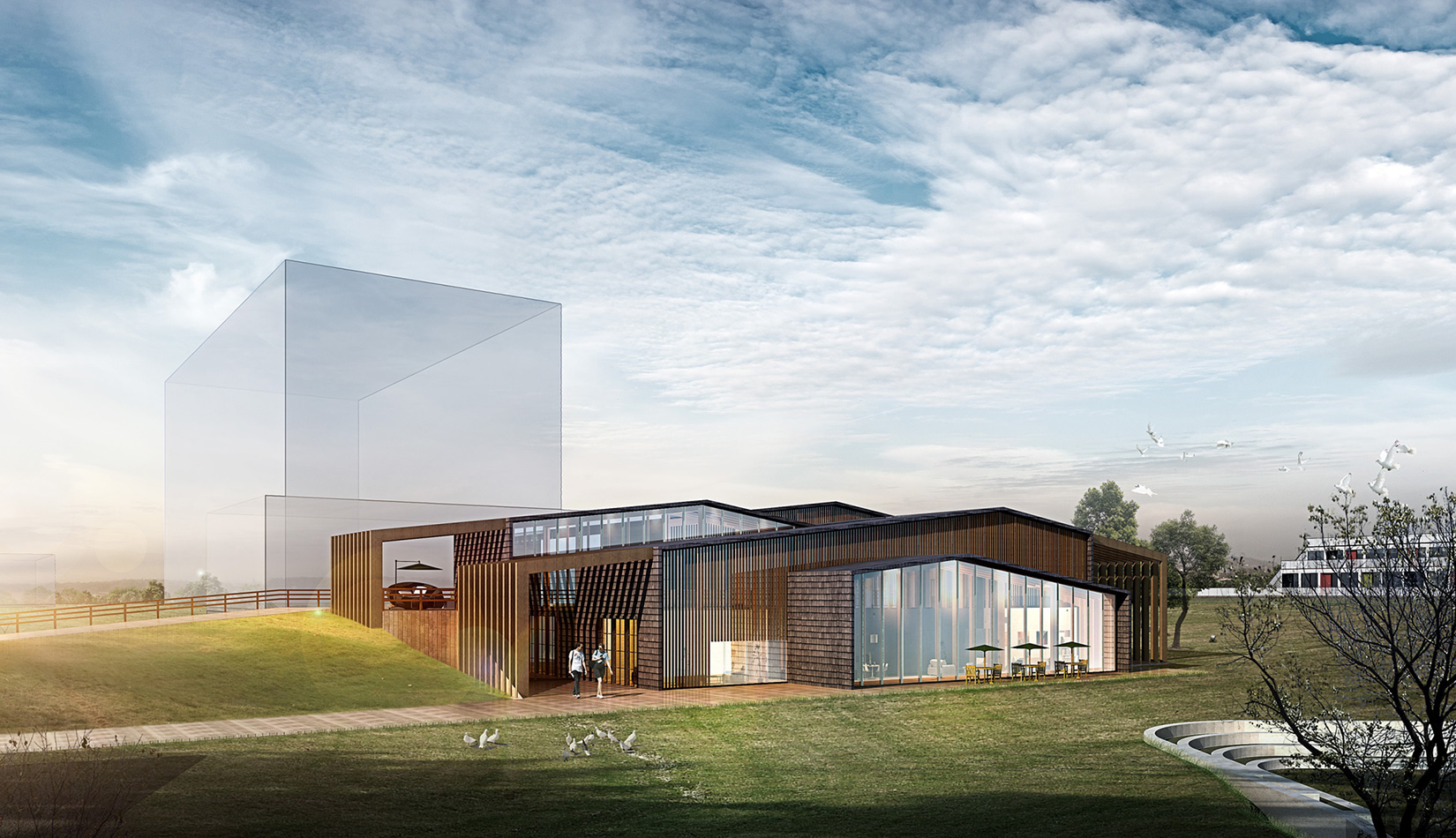 項(xiàng)目選址位于“中德創(chuàng)意設(shè)計(jì) D-ZONE”地塊中,天然的谷地和水流,以草地為主。 考慮到周邊建筑及環(huán)境,確定了交錯的疊合的取景形式,致力于增加觀景表面積將美景框入窗中。 辦公區(qū)、多功能廳、展覽區(qū)、室外展廳和自然環(huán)境相互交融并置,相互之間流線獨(dú)立又彼此滲透。