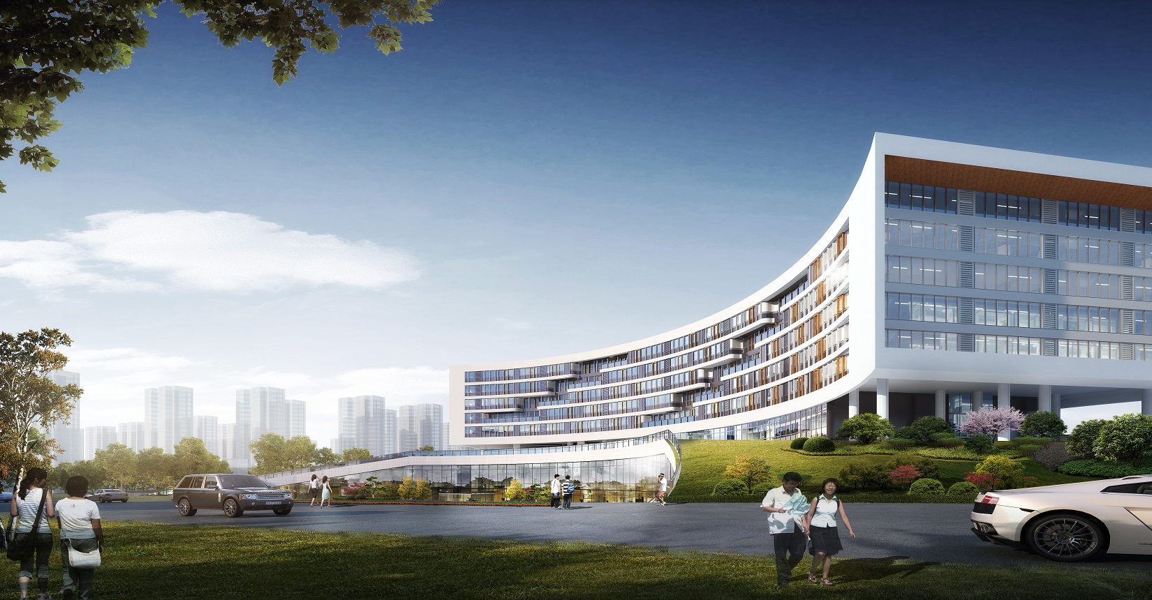 考慮到用地形狀、使用功能和日照等條件因素的影響,總平面布局以“生長”為主題,寓意生命向上生長的力量,生生不息,無限伸展。枝杈無限分支向上生長,象征著無限的力量與生機(jī)。而中醫(yī)的健康講究氣血通暢,循環(huán)往復(fù),從而衍生出“五行”相輔相成的設(shè)計理念。根據(jù)五行方位確定五行主題。將金水湖與建筑相融合,金水湖為“水”,輔“金”“木”“火”“土”四個主題廣場。