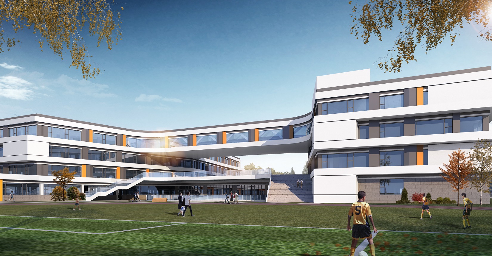 項(xiàng)目設(shè)計(jì)以“書(shū)籍”和“階梯”為靈感,將教學(xué)樓以退臺(tái)及錯(cuò)落的形式展示“書(shū)籍”和“階梯”的理念,設(shè)計(jì)現(xiàn)代化“書(shū)本”校園,希望學(xué)生們?cè)谧x書(shū)中成長(zhǎng)。
